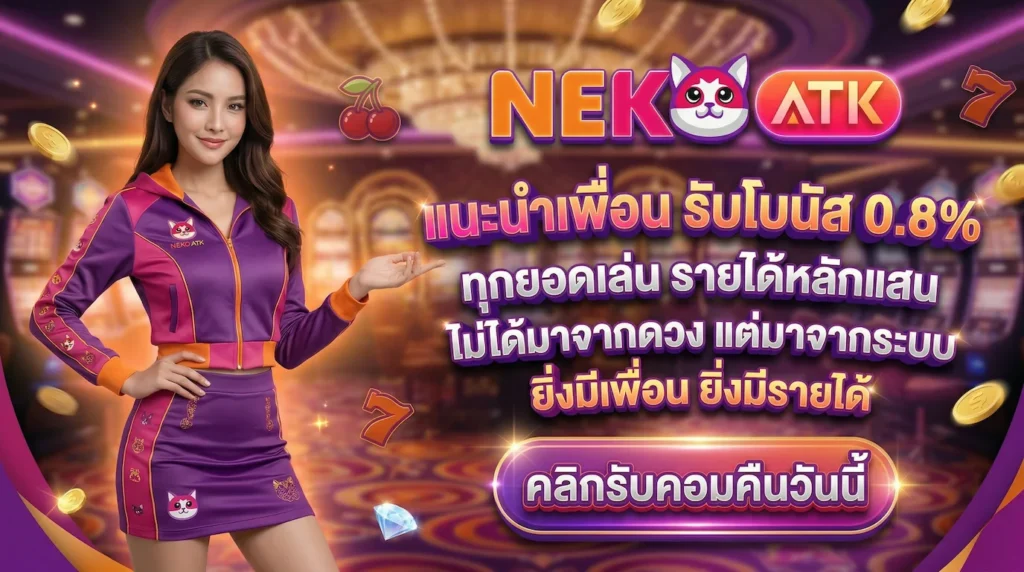 ทั้งหมดนี้ทำให้ NEKOATK กลายเป็นแพลตฟอร์มที่ตอบโจทย์ทั้งความสนุกและโอกาสในการทำกำไรได้อย่างลงตัว เหมาะสำหรับผู้เล่นทุกระดับที่ต้องการประสบการณ์เกมสล็อตออนไลน์ที่ครบวงจร